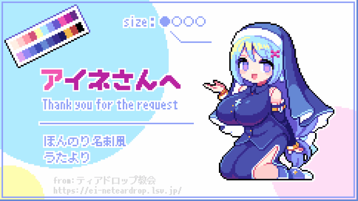 名刺風な感じのシズクちゃんをドットで描いていただきました!